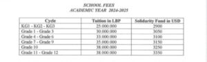 ولفت مراسلنا في بيروت، ان مدرسة الانطونية عجلتون وهي تقع في جبل لبنان اعالي كسروان تابعة للرهبان الانطونيين رفعت الاقساط من ١٥٠٠ الى حوالي ٣٠٠٠ دولار بنسبة كبيرة جدا وبشكل مفاجئ.
